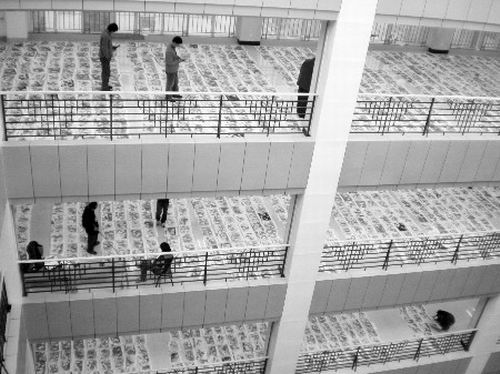 記者在現(xiàn)場看到,每一個閱卷區(qū)域都將幾百份試卷整整齊齊地擺放在地板上,然后專家依次進行打分。據(jù)介紹,閱卷專家總是盯著同樣的試卷,差不多超過十分鐘就會出現(xiàn)視覺疲勞,為了讓打分更合理公平,差不多過一刻鐘左右的時間,專家都要停下來調(diào)節(jié)一下,然后再評分。省招考院普招處張志剛處長介紹,所有閱卷教師在整個閱卷期間都封閉管理,手機等通訊工具都由閱卷管理機構(gòu)統(tǒng)一保管。