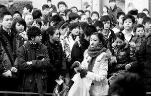 早上7點(diǎn)半,電影學(xué)院院內(nèi)已是人聲鼎沸,前來趕考的學(xué)生在各自報(bào)考的院系樓前排隊(duì)等著叫號(hào)進(jìn)考場(chǎng)。在備受矚目的報(bào)考大熱門表演系樓前,1000多名來自全國各地的學(xué)生和龐大的“家長(zhǎng)助考團(tuán)”擠滿空?qǐng)觥?/p>