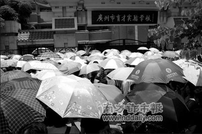 在育才實(shí)驗(yàn)學(xué)校門(mén)口,從佛山開(kāi)車(chē)過(guò)來(lái)的李女士告訴記者,他們一個(gè)早上跑了3個(gè)地方才找到考場(chǎng),“一開(kāi)始以為是育才中學(xué),跑到那邊才知道弄錯(cuò)了,后來(lái)又跑去了附近的第109中,第三次才找到這里!