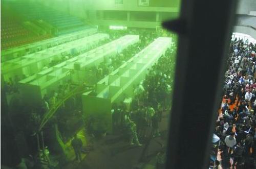 雖然擁有高達9%的年經(jīng)濟增長率,但國內(nèi)商業(yè)、服務業(yè)所能提供的就業(yè)崗位仍不能滿足每年新增的就業(yè)需求。知識型勞力過剩的情況不能避免的出現(xiàn)了。求職中的學生們來不及考慮這些,他們西裝革履,他們擠出微笑,簡歷中的寸照與期待的面孔疊在一起,等待著命運的垂青。(程啟凌)