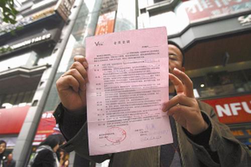 一學(xué)員拿著合同書向記者投訴。記者 高科 攝