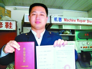 小唐說:“我寫作這本書,就是想使初學(xué)者少走彎路,能快速成為一個專業(yè)的修鞋工人!睂⒔8萬字的《世界第一機(jī)器修鞋書》書稿去年底終于寫作完成,并于去年11月28日在廣東省版權(quán)局進(jìn)行了版權(quán)登記。