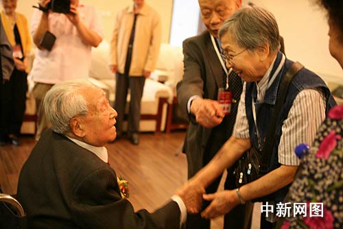 當(dāng)年的老師、102歲高齡的著名經(jīng)濟(jì)學(xué)家楊敬年,依然精神矍鑠。在接過白發(fā)蒼蒼的同學(xué)們獻(xiàn)上的鮮花后,楊敬年風(fēng)趣地對大家說:“和我相比,你們還都是年輕人,我羨慕大家;我的長壽秘訣就是經(jīng)常用腦,希望大家能每天讀一兩首詩、寫兩三段文章,用這種方式度過晚年,你們就會忘記年齡!”