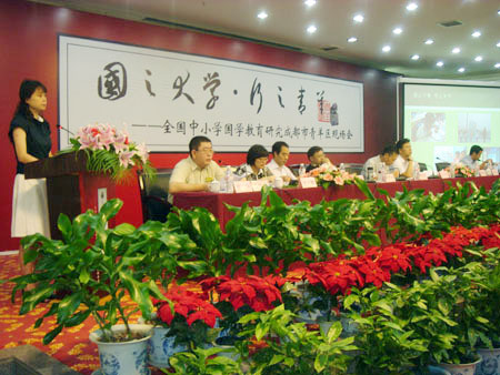 7月8日,全國(guó)中小學(xué)國(guó)學(xué)教育研究成都市青羊區(qū)現(xiàn)場(chǎng)會(huì)在蓉召開,來自北京、青島、重慶等地的上百名專家代表就國(guó)學(xué)教育在中小學(xué)校園內(nèi)的開展進(jìn)行了交流討論。據(jù)中國(guó)教育部語言文字應(yīng)用管理司司長(zhǎng)王登峰透露,有關(guān)部門準(zhǔn)備邀請(qǐng)歌星演唱經(jīng)典詩詞,以契合中小學(xué)生的年齡特點(diǎn)和心理需求。