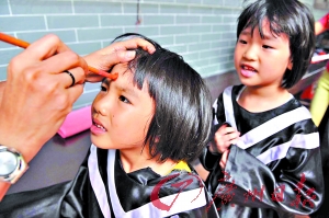 昨日上午,佛山祖廟孔圣園迎來了近百名前來行開筆禮的小朋友。正衣冠,點朱砂,敲啟智鐘……雖然天氣炎熱,儀式進行得簡單緊湊,但在場的家長都表示,“相信等孩子長大了會記得今天。”(記者陳昕宇)