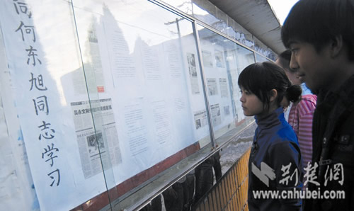 談起方招,他在羅田縣育英高中的班主任黃開勝記憶猶新:“他雖然成績不太好,但勤奮上進,學習態(tài)度非常好!秉S開勝介紹,在育英高中的兩年里,每天早自習,方招總是第一個到教室,溫習功課。
