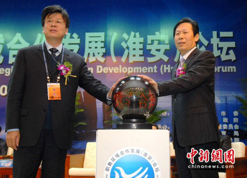 論壇上,江蘇省經(jīng)濟(jì)與信息化委員會副主任陳為保和淮安市市長高雪坤共同為產(chǎn)學(xué)研合作互動平臺——江蘇省經(jīng)濟(jì)與信息化委員會培訓(xùn)基地、淮安市產(chǎn)學(xué)研協(xié)會揭牌。