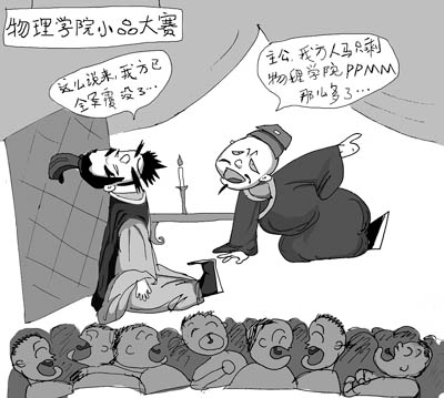 清華理工班劇這種“蔫兒壞”的惡搞傳統(tǒng),被材科系06級學(xué)生于超繼承并發(fā)揚光大。他主創(chuàng)的班劇《材科傳奇》同樣走寫實路線,極盡搞笑之能事,在校園里很有些“粉絲”。