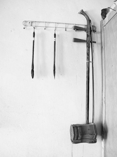 劉萬芳死后,同事蔣得地把手風(fēng)琴鎖進(jìn)了皮匣。他清晰地記得,兩人的最后一次唱和發(fā)生在去年六一兒童節(jié)匯報演出。此后,劉萬芳“高血壓”纏身,加之事務(wù)繁忙,二胡被束之高閣,再也沒拉響,如今,它已是塵埃滿布,再也發(fā)不出聲響。