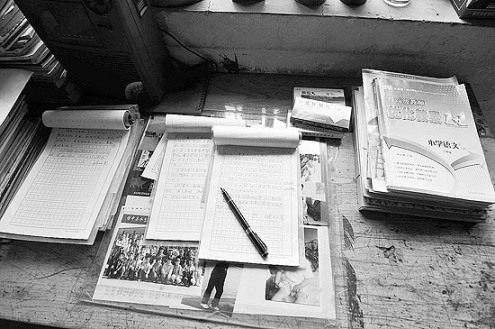 他死后,人們在他的家中,發(fā)現(xiàn)了7本尚未批改完的學(xué)生作文本。批改作文的眉批,字跡工工整整,他會一絲不茍地給學(xué)生們寫下評語:“注意句子之間的停頓和標(biāo)點(diǎn)的運(yùn)用”、“書寫認(rèn)真,語句生動感人”。