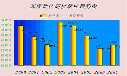 昨日,武漢市大中專(zhuān)畢業(yè)生就業(yè)管理辦公室發(fā)布“2007年度武漢地區(qū)大學(xué)畢業(yè)生就業(yè)率指數(shù)報(bào)告”,稱(chēng)去年武漢市大學(xué)畢業(yè)生就業(yè)率達(dá)到74.12%,比上年高出1.48%,自2004年以來(lái)首次出現(xiàn)回升。
