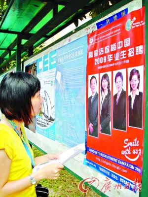 10月,是大學(xué)校園招聘的開始月,但金融海嘯來襲,一些大型企業(yè)取消校園招聘計劃的信息出現(xiàn)在學(xué)校的就業(yè)指導(dǎo)網(wǎng)站上……中山大學(xué)就業(yè)指導(dǎo)中心黃老師介紹,今年就業(yè)壓力增大,來校招聘的中小企業(yè)大減,金融經(jīng)濟類受影響較大,證券公司僅一家來校。2009年加入求職大軍的畢業(yè)生人數(shù)激增至近600萬,人數(shù)增加職位減少,畢業(yè)生找工作難上加難。