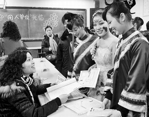“今年學生們的總體期望值下降了,以前像寧夏、新疆這些地方要招人,根本沒人愿意去,特別是成績優(yōu)秀的學生,工資少于4000根本不考慮,但今年,很多學生自己降低了要求!痹陉兾鲙煼洞髮W就業(yè)指導中心辦公室采訪時,記者遇到了該校外國語學院老師。