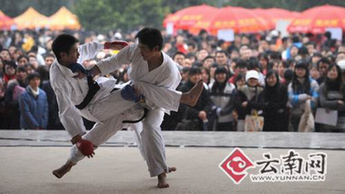 手握一根1.5米的木棍,身著藍(lán)色訓(xùn)練服的李萍表演起了“棍術(shù)”。這不是普通的武術(shù)表演,而是在云南省師范類畢業(yè)生專場招聘會上,大學(xué)生推銷自己的別樣方式。