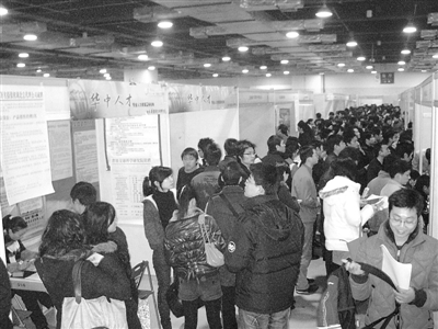 本報(bào)訊(記者萬(wàn)建輝)昨日在武漢國(guó)際會(huì)展中心舉行的“2009新春首場(chǎng)大型人才交流會(huì)”上,娃哈哈湖北分公司招聘人員問(wèn)前來(lái)求職的一名大學(xué)畢業(yè)生:“有無(wú)‘社會(huì)資源’?”當(dāng)?shù)玫娇隙ǖ幕卮鸷螅衅溉藛T欣然收下其簡(jiǎn)歷。