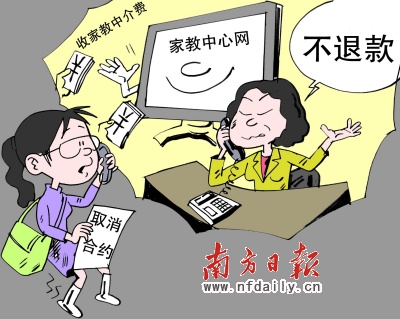 “家教中介費(fèi)怎么就易收難退?”日前,本報接到華南師范大學(xué)學(xué)生小東(化名)報料稱,在其交納中介費(fèi)后由于受教對象原因未能成功進(jìn)行家教,但家教中介公司卻以有關(guān)條款為由不予退款。