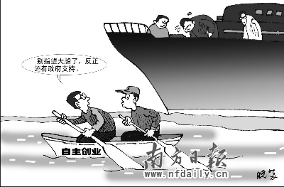 天涯網(wǎng)友Sting認為大學生創(chuàng)業(yè)是就業(yè)環(huán)境太差被逼無奈的選擇,他認為大學生創(chuàng)業(yè)大多是小本經(jīng)營,具有很大的不穩(wěn)定性!霸饺菀组_創(chuàng)的行業(yè)越容易垮掉,現(xiàn)在金融危機,大家一窩蜂都去開公司,這些匆匆忙忙開出來的公司很有可能抵擋不住金融危機的襲擊,非常容易快速倒閉。”