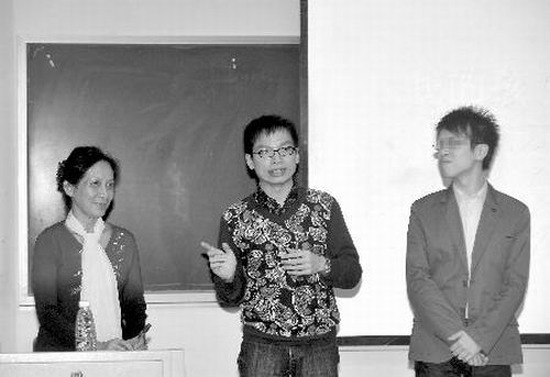 昨晚8時(shí)許,四川師范大學(xué)大學(xué)生心理健康教育服務(wù)中心和愛白成都青年同志活動(dòng)中心邀請吳幼堅(jiān)、鄭遠(yuǎn)濤及其男友來到校區(qū),為大學(xué)生聯(lián)手上了一堂同性戀話題的課。