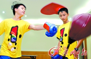 在市21中學生心理輔導(dǎo)室,學生在打沙包發(fā)泄情緒。 邱偉榮 攝