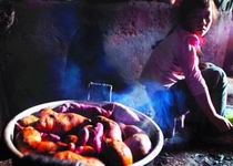 孫家有5畝地,各種一半的紅薯和苞谷,不夠全家5口人和1頭肥豬的口糧,在短暫的雨季,能種一些白菜、青豆和小瓜。旱季來臨,吃的只有早先曬干的白菜,這個(gè)時(shí)候?qū)O父需要去村外的礦山里打3個(gè)月工,每天30元工錢,用來買些大米和供3個(gè)孩子入學(xué)。