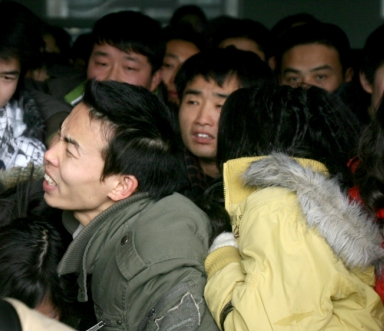 “我不能回家過(guò)年了!弊蛉障挛6時(shí)許,武漢科技大學(xué)信息管理專(zhuān)業(yè)2004級(jí)學(xué)生王永強(qiáng)從漢口火車(chē)站出來(lái),手里拿著一張2月9日回老家的火車(chē)票。