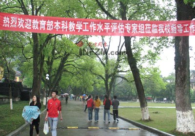 各種迎評(píng)的紅幅掛在教學(xué)樓或者人行道上,每幢教學(xué)樓門口都豎著倒計(jì)時(shí)牌,標(biāo)記著這是評(píng)估前的最后一天。學(xué)生會(huì)成員站在教學(xué)樓門口檢查;铡P@110們穿著嶄新的保安制服,騎著摩托車在四處巡邏,據(jù)說(shuō)為了迎評(píng),添置了不少人手。隨便找個(gè)什么人聊天,開(kāi)口閉口談的都是“評(píng)估”。連和校內(nèi)的小店老板攀談,他也在說(shuō)評(píng)估:“對(duì)面那家店,是為了迎評(píng)新開(kāi)的……”