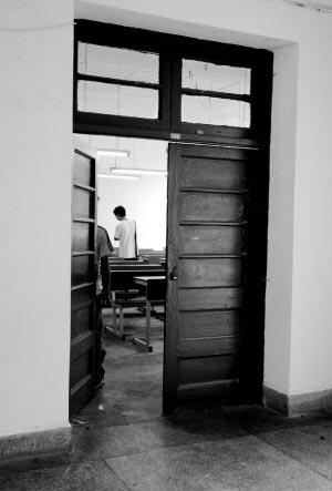 實(shí)習(xí)記者徐趙全 昨天上午11點(diǎn)多,云師大數(shù)學(xué)學(xué)院第一教學(xué)樓102公共教室,教室門開著,里面空無一人,桌椅整齊地?cái)[放著,地板上看不見任何血跡。