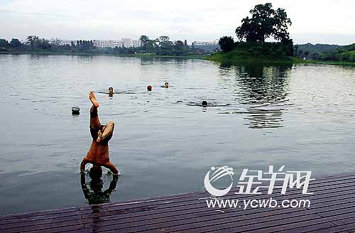 一位剛從水里鉆出來(lái)的學(xué)生證實(shí)了上述推斷:“不少市民傍晚會(huì)專門開車來(lái)這里游泳,周末岸邊都停滿了外面來(lái)的小車!彼f(shuō),學(xué)校的游泳池開放時(shí)間有限制,而且要收費(fèi),自認(rèn)為“水性好”的同學(xué)都樂意到中心湖游泳,“只要不下雨,這里的‘人氣’都很旺”。
