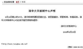 同題報(bào)道:清華大學(xué)網(wǎng)站被黑 黑客捏造教授采訪新聞報(bào)道