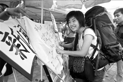 蔣方舟報(bào)到時(shí)簽名!”緢(bào)記者夏永攝