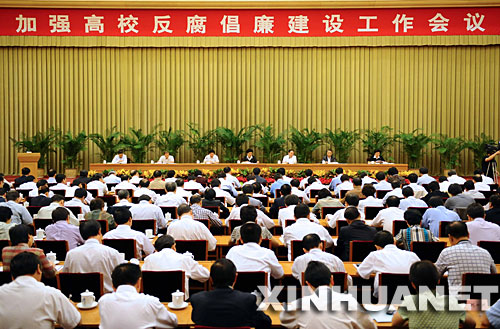 “決不能讓烏七八糟、消極腐敗的東西進(jìn)校園!鼻安痪,中央政治局常委、中央紀(jì)委書記賀國強(qiáng)對高校反腐工作作出重要批示。近年來,我國高校內(nèi)的腐敗案件呈現(xiàn)多發(fā)態(tài)勢,這一原來被認(rèn)為是“清水衙門”的部門正在成為腐敗蔓延的新領(lǐng)域。時值新學(xué)期開學(xué)之際,教育部在北京召開加強(qiáng)高校反腐倡廉建設(shè)工作會議,就這一問題進(jìn)行研究部署。