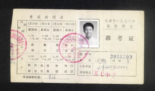 1978年夏天,恢復(fù)高考后的第二次考試即將開始,17歲的周鵬當(dāng)時(shí)是西青區(qū)梨園頭中學(xué)一名普通的高一學(xué)生,報(bào)名參加了考試!澳钦媸且粓鎏貏e的考試!1978年7月20日清晨,周鵬走進(jìn)位于五七中學(xué)的考場時(shí)發(fā)現(xiàn),考生年齡跨度之大讓人瞠目,“二十五六歲的非常普遍,甚至有三十幾歲的!毙疫\(yùn)的是,年紀(jì)輕輕的他被當(dāng)時(shí)的天津大學(xué)建筑分校(今天津市城建學(xué)院)給水排水專業(yè)錄取。