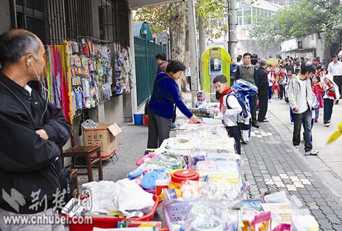 胡女士的兒子說(shuō),這些東西都是在學(xué)校門(mén)口的小攤上買(mǎi)的;有的同學(xué)一次拿不出幾十元錢(qián),攤主還允許他們“分期付款”。胡女士曾找過(guò)攤主,指責(zé)他們不該用這種方式引誘小學(xué)生,但攤主沒(méi)有理會(huì)。