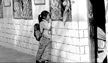 但是不到一個星期,郭曉曉就失去了那張課桌。站在教室外面,她眼睜睜地看著另一個男孩子坐在“自己的課桌”前。她只好跑去問父親:“爸爸,為啥別的小朋友能進教室,我卻不能?”