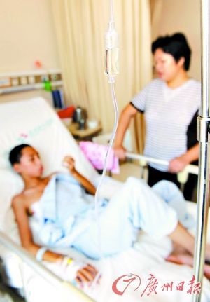 由于病情過重,11日凌晨1時許,便轉(zhuǎn)送康華醫(yī)院。記者隨后在康華醫(yī)院普胸科病房找到了肖雨。他正在艱難地喝湯!白詮姆伪淮檀┖螅徒(jīng)?人浴!毙び甑膵寢屨f。