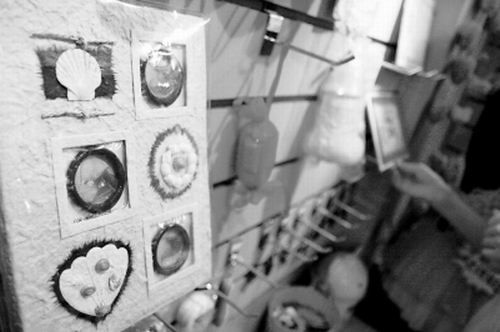老板娘正在整理用安全套做的衣服