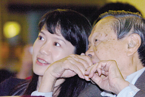 應(yīng)華英文教基金會(huì)之邀,享譽(yù)世界的著名物理學(xué)家、諾貝爾獎(jiǎng)獲得者楊振寧博士昨日(10月27日,下同)攜少妻翁帆走進(jìn)東大。這回楊振寧說起了物理學(xué)的誘惑,談起中國(guó)人與諾貝爾,甚至為老朋友吳健雄叫屈,卻避口不談“翁帆和我”。然而,86歲的老先生講到盡興處還是說漏了嘴:我24小時(shí)保持思考,有時(shí)睡到12點(diǎn)忽然像孩子似的對(duì)翁帆說我想出來了。