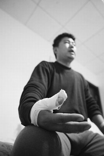 昨日(10月28日),記者在農(nóng)安縣醫(yī)院見到了崔老師,他眼眶青紫,臉腫著,已經(jīng)骨折的右手拇指纏著繃帶。據(jù)崔老師回憶,10月27日17時10分許,他接到班上女同學電話,說有一群20左右歲的男青年來班上找人,這些人酒氣熏天,有的提著棒子,有的還拿著刀,氣勢洶洶地點名要找班上一名姓馬的同學算賬。崔老師接到電話立即跑向教室。此時,距上晚自習還有近20分鐘,教室里有10多名同學,其中有兩名男生。