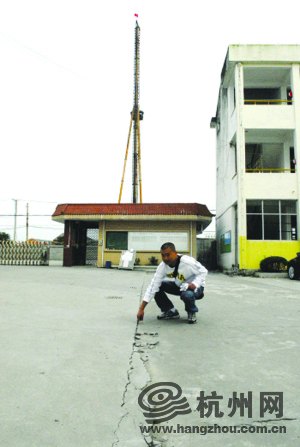 學(xué)校地面開(kāi)裂,不遠(yuǎn)處就是打樁機(jī)。 攝影 曉春