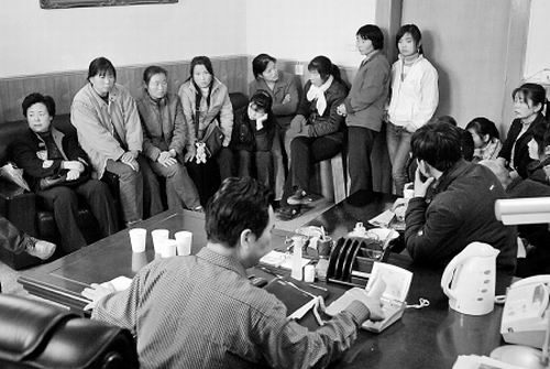 從昨天早上8時(shí)到下午5時(shí)30分時(shí),職工們一直圍坐在馬院長(zhǎng)辦公室里,沙發(fā)、凳子不夠坐,一些人干脆蹲在辦公室門(mén)外。“無(wú)法辦公,不得離開(kāi),也不能出去吃飯!瘪R金玉說(shuō)。