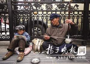 春節(jié)前,浩浩跟著爺爺坐了二十幾個(gè)小時(shí)火車來到南京乞討。浩浩的爺爺說:“同村的人告訴我們,南京人特別善良,不欺負(fù)外地人,愿意幫助我們這樣困難的人”。白天,爺孫倆坐在南京街頭,爺爺拉二胡賣藝乞討。老人拉了一曲《繡金匾》,“正月里鬧元宵,金匾繡開了……”摸著陳舊的二胡,老人不好意思地笑了,“這手藝好些年不碰了,曲子都是自己摸索出來的!