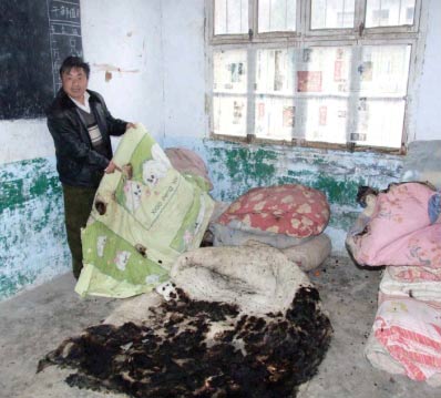 據(jù)該校教師姜懷英介紹,目前該校在不同的時(shí)間段,先后有21次不明原因地著火。根據(jù)統(tǒng)計(jì),被燒毀的被子已接近40床。