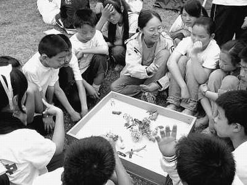 “一個(gè)人拿一個(gè)沙具,拿好后坐下來!鄙旰捎腊l(fā)布命令,孩子們聽話地做了。接下來,申荷永和高嵐問他們:你們未來最想做什么?男生普遍的理想是工程師,想建最結(jié)實(shí)的房子,女生的普遍理想是醫(yī)生,可以救死扶傷。通過這樣的談話拉近距離后,他們開始問孩子們:你挑選的沙具是什么?為什么選這個(gè)沙具?談著談著,孩子們的話越來越多,也越來越放松,孩子們的心扉打開了。
