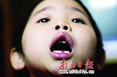 當(dāng)日傍晚6時(shí)許,白英琴將珊珊從幼兒園領(lǐng)回家,“她沒(méi)有太多話(huà),回到家我做了她喜歡吃的肉,可她怎么也不張口吃飯。”當(dāng)白英琴讓珊珊張口,試圖喂她吃飯時(shí),發(fā)現(xiàn)珊珊下排門(mén)牙不見(jiàn)了(如圖,楊曦?cái)z)。