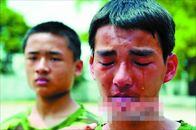 這是一所沒有課本,也不開設(shè)文化課的特殊學(xué)校。進(jìn)入這所學(xué)校的學(xué)員,必須遵守16條嚴(yán)格的校規(guī),必須“面壁思過”一至兩天,還必須參加學(xué)校的魔鬼訓(xùn)練,動作不規(guī)范便要罰做俯臥撐,反抗教官命令或試圖逃跑可能挨教鞭。