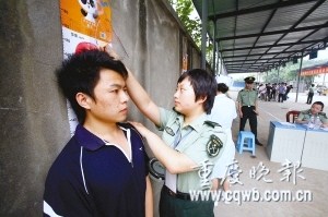 軍檢為期8天,324醫(yī)院是我市唯一承擔軍檢工作的醫(yī)院。董民說,想考軍校的學生,均要過“三關”:體格檢查、面試和心理測試,3個項目集中在一天測試。來自40個區(qū)縣的考生將按地區(qū)、分8批參加軍檢。據(jù)了解,要求報考軍校的考生,標準體重為:(身高-110)公斤,男生超過該標準25%或少于15%,女生超過或少于15%,都不合格;男女生的身高最低要求分別為162cm和160cm;裸眼視力最低標準為4.5。