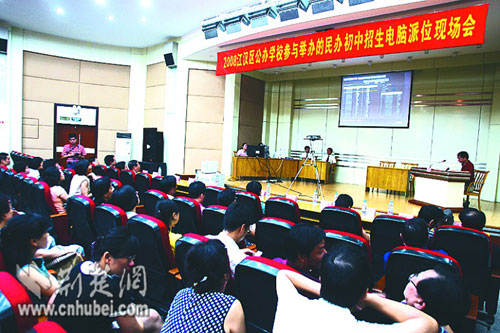 昨日,江漢區(qū)教育局隨機(jī)抽取了6位家長代表,青山區(qū)邀請了100多名家長,見證派位過程。