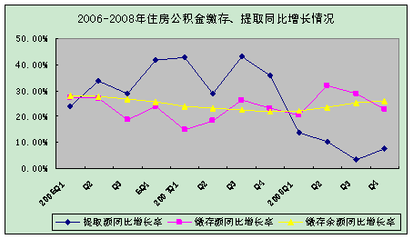住房公積金使用方向集中于發(fā)放個(gè)人住房貸款,受房地產(chǎn)市場景氣狀況影響,個(gè)人住房貸款增幅趨緩,而繳存余額穩(wěn)定增長,自2007年四季度起,住房公積金資金使用率和資金運(yùn)用率呈雙降趨勢,專戶存款資金繼續(xù)增加。