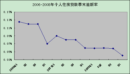 2008年末,全國個(gè)人貸款逾期余額為2.47億元,平均逾期率為0.04%,同比下降0.02個(gè)百分點(diǎn)。