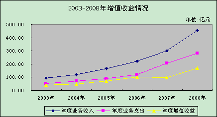 2008年業(yè)務(wù)收入為453.56億元,同比增加152.67億元,增幅為50.74%。業(yè)務(wù)支出為283.46億元,同比增加78.48億元,增幅為38.29%。增值收益為170.10億元,同比增加70.49億元,增幅為70.77%。年末貸款風(fēng)險(xiǎn)準(zhǔn)備金余額為285.67億元,占貸款余額的4.68%;年末城市廉租住房建設(shè)補(bǔ)充資金總額為191.93億元,按規(guī)定累計(jì)向同級財(cái)政上繳96.98億元。